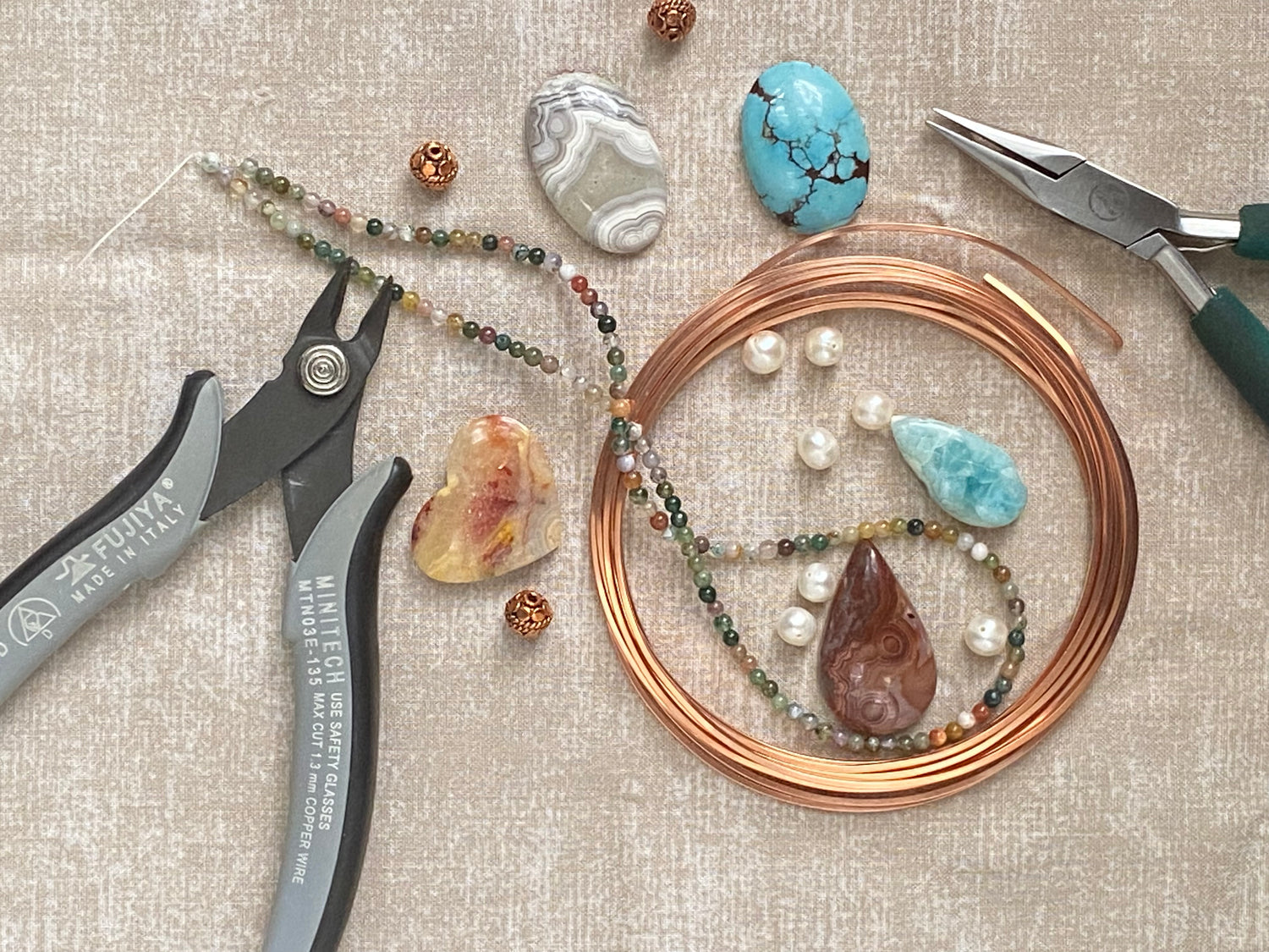 Fast forward thirty-something years, one husband, two grown up kids, two horses, many paintings, bonsai trees, sewing and sculpting projects later. I was still searching for some way to express myself, and there it was. Wire wrapping, jewellery that didn’t need expensive equipment, just a few tools and some wire and my jewellery journey had finally begun.